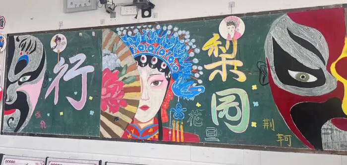 “梨园行”博物馆是传统戏曲文化的创意秀场。京剧脸谱色彩浓烈、图案夸张,张飞的刚猛、荆轲的侠义在脸谱的勾勒中跃然眼前;花旦的扮相精致华美,头饰的每一处细节都彰显着戏曲服饰的精湛工艺。同学们亲手制作的戏曲道具,从琵琶模型到京剧盔头,无不体现着对戏曲文化的深入探究。更有戏曲知识科普海报,将生、旦、净、末、丑的角色特点娓娓道来,让戏曲这门古老的艺术以青春可感的方式走进同学们的心里,在校园中掀起一股“戏曲热”。