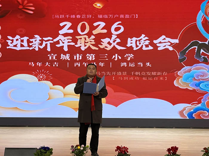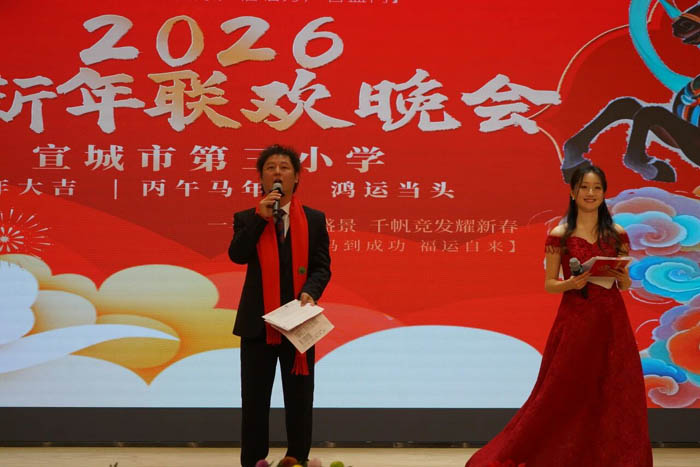 金蛇辞旧韵,骏马踏新春。12月31日晚,宣城市第三小学天都校区报告厅内欢声如潮、暖意融融,我校“2026年元旦教师联欢晚会”在此热烈启幕,全体教职工齐聚一堂,以欢笑辞旧、以歌舞寄情,一片欢腾喜悦、生机勃勃的美好景象。