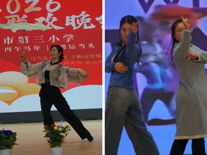 体艺组教师的舞蹈《手扶拖拉机斯基》节奏明快,活力四射;南校区一年级组教师的《疯狂动物城》舞蹈活泼有趣,展现了教师们的青春风采;五年级组唐燕老师的独舞《遥思古韵·恰恰派对》则将古典韵味与现代舞步完美结合,令人沉醉。
