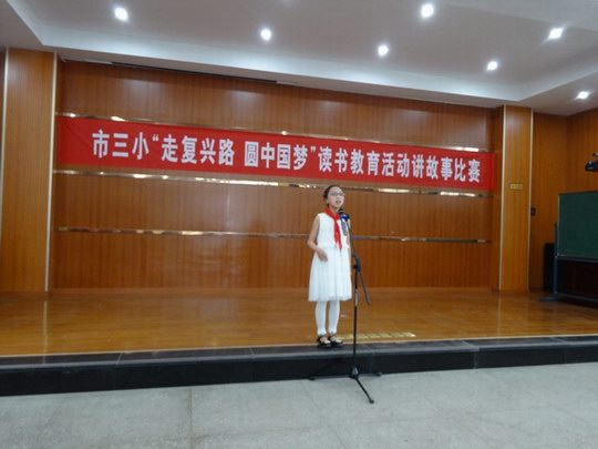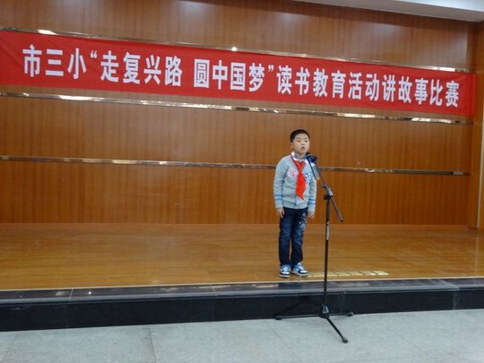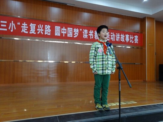 为丰富校园文化生活,展现新时期少年热爱祖国、奋发进取的精神风貌,市第三小学于4月3日下午在北校报告厅举行了以“走复兴路、圆中国梦”为主题的小学生讲故事比赛。 来自3至6年级的29名选手都是由各班经过选拔推荐的,他们围绕“走复兴路、圆中国梦”这一主题,声情并茂、自然大方地演绎了《自古英雄出少年》、《我的梦,中国梦》、《无声的关爱》、《我的秘密》、《奶奶的收藏》、《中国梦-少年梦》等感人的小故事,不仅赢得了评委和现场听众的阵阵掌声,也让每一位参与其中的学生深受教育。 经过评比,嵇承果、王思睿、陈子玄三位同学脱颖而出,夺得了本次比赛的一等奖。(杨玲)(本稿选登《宣州专刊》 2014年05月09日 网址:http://epaper.xuanwww.com/xzzk/html/2014-05/09/content_70172.htm?div=-1)