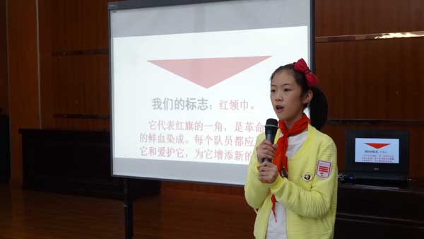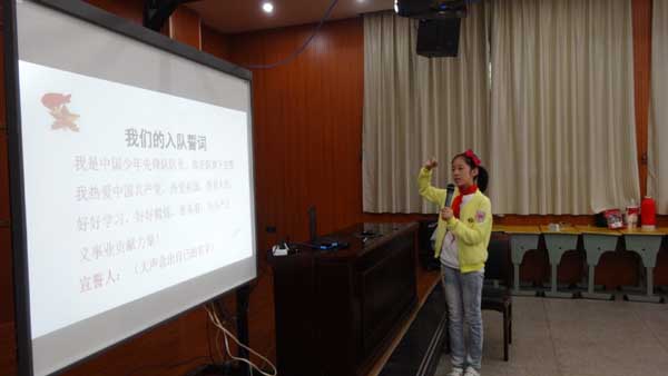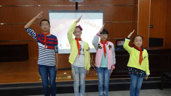 金秋十月,少先队员们迎来了自己的节日——第66个中国少年先锋队建队日。 10月13日下午,市三小组织开展建队日主题教育活动。少先队大队委向各中队委讲解了少先队的相关历史、少先队礼仪和社会主义核心价值观,最后少先队员们在大队长的带领下重温了入队誓词。活动庄重而有意义。(杨华训/文 孙慧敏/图)