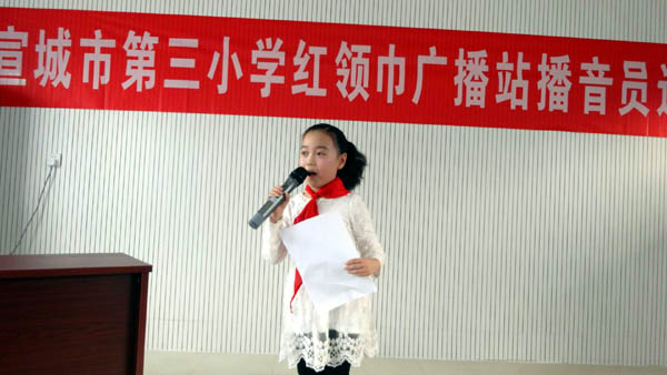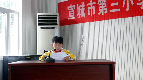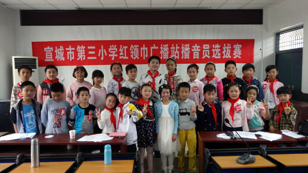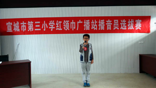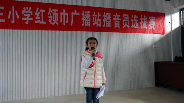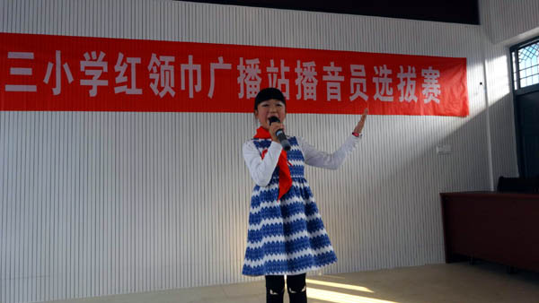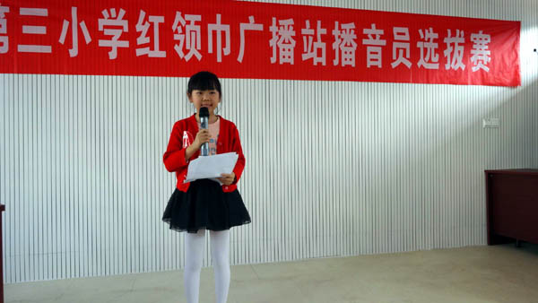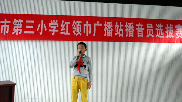 11月6日下午,市第三小学少先大队部举行了 “红领巾广播站”播音员选拔赛。 本次活动得到了同学们的热烈响应和积极参与,经过班级初选,有42名播音员候选人参加本次比赛。经过一个多小时的紧张角逐和评委们的严格评选,最后12名同学脱颖而出,他们将接受广播站播音员的培训,并参与学校日常播音工作。(文/杨玲 图/杨华训)