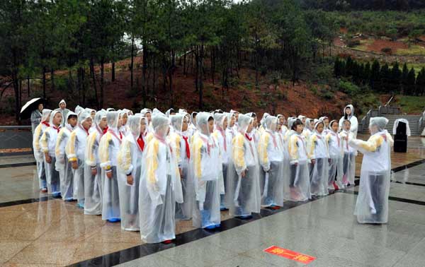 9月30日是烈士纪念日。宣城市市委、市政府在宣城市烈士陵园举行向烈士纪念碑敬献花篮仪式,市第三小学少先队代表参加了仪式。 在乐曲伴奏下,64名佩戴红领巾的少先队代表高唱《中华人民共和国国歌》并垂首肃立,为英勇牺牲的烈士们默哀。默哀完毕,少先队代表面向纪念碑,高举右手、齐致队礼,唱响《我们是共产主义接班人》之歌。仪式结束后,少先队代表瞻仰了烈士纪念碑。(曹锐)