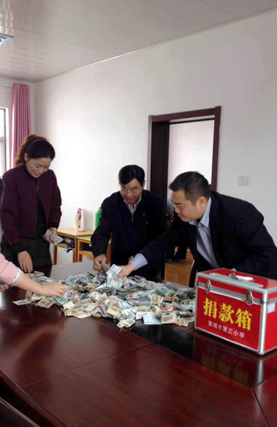 10月11日,学校发起为张弘毅同学、薛忠珊教师捐款的倡议,广大师生纷纷伸出援手,奉献爱心,倡议发动不到一天时间就收到捐款22274余元。“师生们的捐款已不仅仅是一个数字,更多的是一种爱心的汇聚。”市三小校长刘正厚说:“学校会及时把捐款转交到他们手中,祝愿他们早日康复,回归校园!”(文/曹锐 图/杨华训 杨玲)