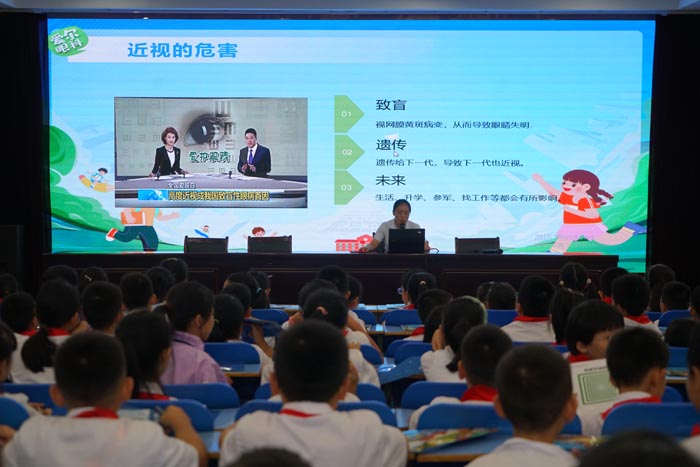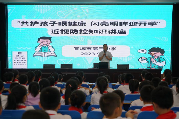 2023年9月是第7个全国近视防控宣传月,为了宣传护眼知识,增强儿童青少年护眼意识,9月14日下午,宣城市眼科医院嵇主任在北校区报告厅为高年级学生开展了以“预防近视”为主题的健康讲座。