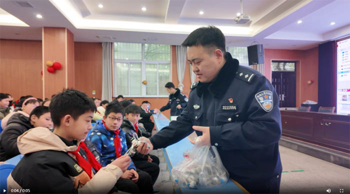 活动现场,民警们还为小朋友们送去了带有警察标志的钥匙扣,并和小朋友们一起上完了这节“开学第一课”。