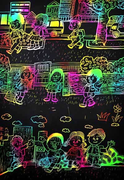 12月28日,画展刚刚在橱窗展出就引来了同学们驻足观看,有的骄傲的说:“这幅画是我画的”,有的羡慕的说:“这幅画画的好好哦”……惊喜之情溢于言表。放学时,不少接学生的家长也被琳琅满目的作品吸引过来,他们细细鉴赏,不时发出赞叹。