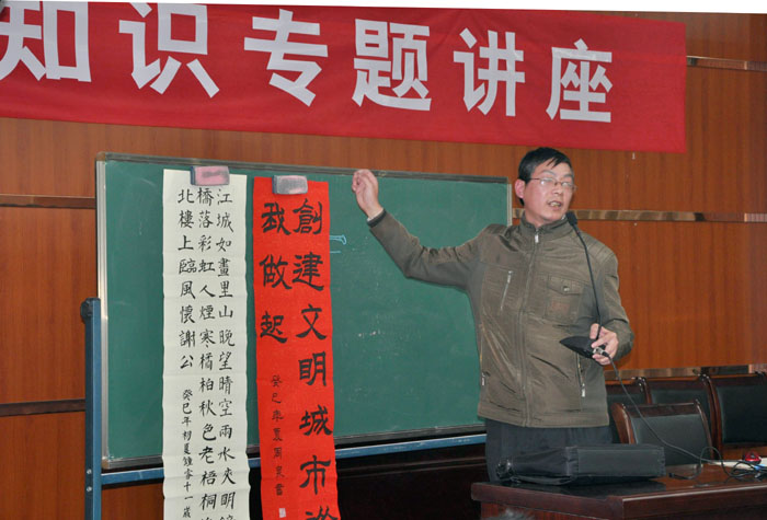 “本次分南、北校区举办书法知识专题讲座,是学校坚持‘分层次教学,针对性授课’的一次尝试,这次尝试是学校在了解学生写字实际水平的基础上,根据不同学生的不同情况,针对学生的个体差异,举办不同学段的知识讲座,旨在因材施教,促使学校书法专兼职教师在以后的教学中,不光要面向全体学生教学,也要关注和重视每一个学生的个体差异,力求促使不同层次的学生在原有的写字水平基础上进一步提高。”学校负责人对前来聆听讲座的老师说。
