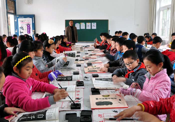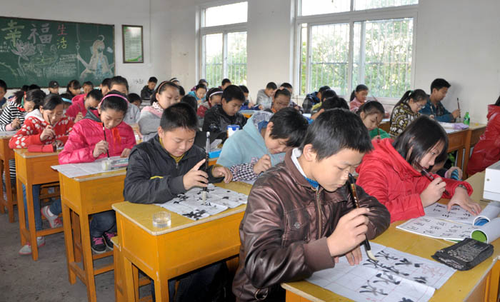 一支毛笔,两尺毛毡,翰墨飘香沁校园,《高山流水》悠扬绵长, 这是市第三小学校园内20分钟书法练习课的实时写照。自宣州区教体局开展“书法进课堂”以来,“育德、启智、健身、审美”的习书新风正在市三小校园内传扬。