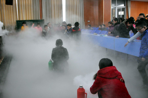 “《西游记》中,孙悟空‘腾云驾雾’的镜头是怎样拍摄的呢?”3月5日,在“小牛顿”科学普及活动现场,市第三小学高年级的同学找到了答案:“让孙悟空做着飞行的动作,在他的背后展现出蓝天和急速飘动的白云,让干冰形成的气体流过,就有了腾云驾雾的效果”。