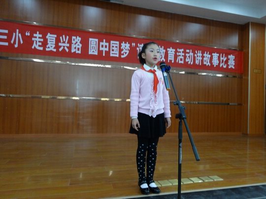 为丰富校园文化生活,展现新时期少年热爱祖国、奋发进取的精神风貌,市第三小学于4月3日下午在北校报告厅举行了以“走复兴路、圆中国梦”为主题的小学生讲故事比赛。 来自3至6年级的29名选手都是由各班经过选拔推荐的,他们围绕“走复兴路、圆中国梦”这一主题,声情并茂、自然大方地演绎了《自古英雄出少年》、《我的梦,中国梦》、《无声的关爱》、《我的秘密》、《奶奶的收藏》、《中国梦-少年梦》等感人的小故事,不仅赢得了评委和现场听众的阵阵掌声,也让每一位参与其中的学生深受教育。 经过评比,嵇承果、王思睿、陈子玄三位同学脱颖而出,夺得了本次比赛的一等奖。(杨玲)(本稿选登《宣州专刊》 2014年05月09日 网址:http://epaper.xuanwww.com/xzzk/html/2014-05/09/content_70172.htm?div=-1)
