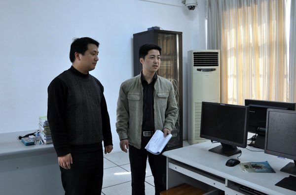 4月9日上午,区教体局教育装备专项督查组成员濮维明、花家虎等一行四人来到市第三小学检查指导教育装备管理与使用情况。
