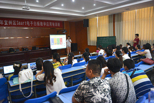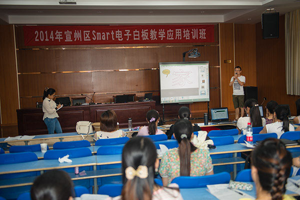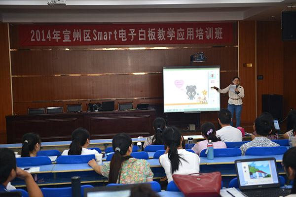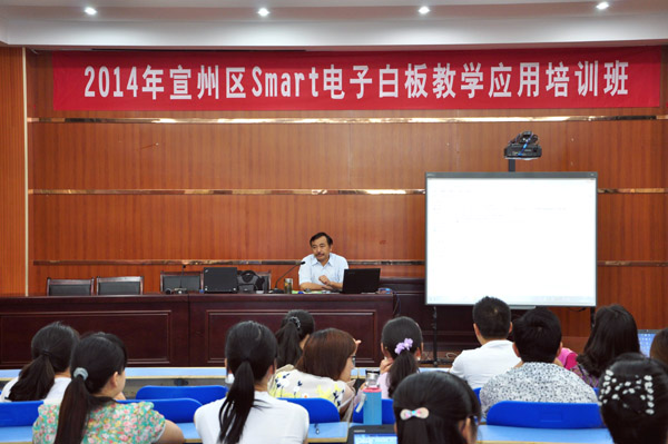 6月11日上午,宣州区Smart电子白板教学应用培训暨smart电子白板应用大赛录像课赛前培训会在市第三小学北校区报告厅举行。即将参加2014年Smart杯交互式电子白板教学应用大赛录像课拍摄的教师参加了培训。