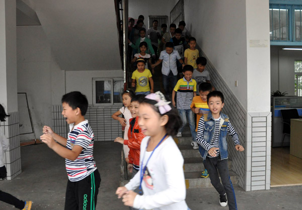 “呜——呜——”上午8时30分,市第三小学上空响起了一声声急促的警报声,“用手抱住头部,弯着腰,不要拥挤。”……现场同学们相互提醒着,2500余名学生从教室撤离到大操场共花时2分10秒。
