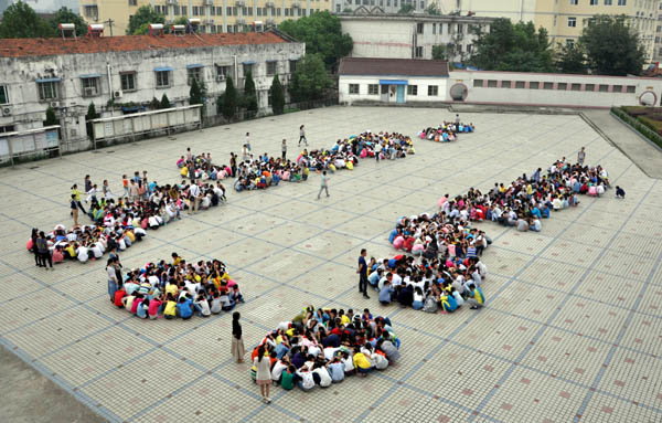 “用手抱住头部,不要拥挤。”……现场同学们相互提醒着,2400余名学生从教室撤离到大操场共花时2分18秒。