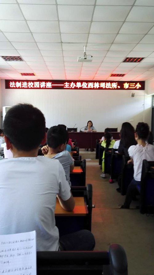 5月12日下午,宣州区法律援助中心主任刘晓春为市第三小学四年级学生举行了一场法制知识讲座。 讲座中刘晓春围绕《青少年犯罪案例和如何预防青少年犯罪》的主题,结合学生的年龄、性格特点,用具体详实的数字和事例介绍了不遵守法律法规酿成的案例,同时还帮助同学们分析讲解了怎样预防侵害、抵制不良诱惑及如何做好自我防范、自我保护等防范知识。 副校长杨海云表示,学校将以此讲座为契机,进一步增强学生的法制观念,提高法律意识和安全保护意识,预防和减少青少年违法犯罪,营造良好的校园法治环境,努力构建和谐的校园。(文/曹锐 图/杨海云)