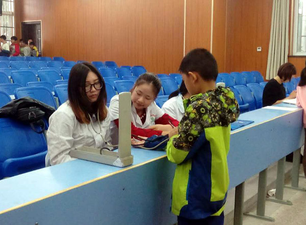 10月10日上午,市第三小学组织2300余名学生进行常规体检。在老师及学生的积极配合下,来自西林社区卫生服务中心的医务人员认真细致地对每位学生的形体机能、内科、口腔、眼科、外科五部分做了全面体检。 关注健康,关爱学生是该校常态工作之一。校长刘正厚告诉笔者:“市三小每年都要从公用经费中抽出一部分资金为学生免费体检。学校把体检工作、体育达标测试工作结合起来,为学生建立了体质健康档案,促使广大学生以更佳的体魄投入到学习和生活中去。”(文/曹 锐 图/常 青)