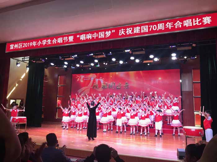 10月20日下午,宣州区教体局在贝林二小报告厅举行了2019年宣州区小学生合唱节暨“唱响中国梦”庆祝建国70周年合唱比赛。教育引导师生做爱国主义精神坚定的弘扬者、实践者、传播者,凝聚“唱响中国梦”的奋进力量,以奋发向上的精神风貌向新中国70华诞献礼。本次活动有 35 个合唱队 1700 余名小学生参加。小学生们热情讴歌党、讴歌祖国、讴歌英雄、讴歌人民,让爱党爱国爱社会主义的时代主旋律响彻华夏大地。