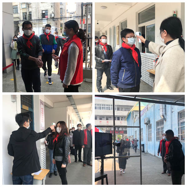 ①门卫:做好防护,要求教职工入校扫描安康码,间隔一米距离、测温、手消毒,体温异常教师交由行政值班带至临时观察点。