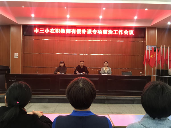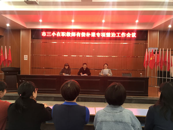 11月16日下午,市三小召开在职教师有偿补课专项整治工作会议,进一步规范教师从教行为,切实加强教师职业道德建设,坚决制止违规补课、有偿家教。