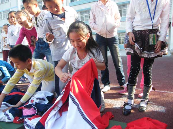 本次比赛按年级组分高、中、低三段进行。比赛项目为系红领巾、背书包接龙、查字典、叠衣服接龙。各中队接到比赛通知后积极准备,先在中队内培训、选拔,再推荐到学校进行比赛。各班留守儿童也积极地加入到比赛中。随着裁判员一声令下,参赛选手“你争我赶”勇争第一;裁判“火眼金睛”,指出缺点;小观众们一个个“摩拳擦掌”跃跃欲试,比赛场面紧张而热烈。