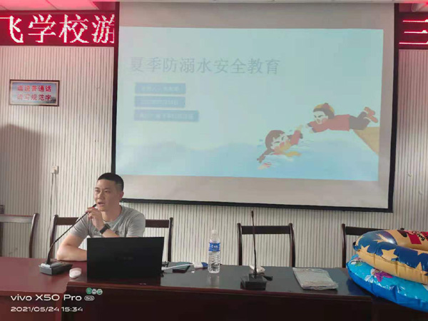 5月24日下午,奋飞学校游泳教练郑老师给我校四年级的同学带来了一堂生动的防溺水安全教育课。郑老师列举了许多身边让人痛心疾首的溺水事故,具体介绍了哪些情况容易造成溺水事故、如何预防溺水及一些基本的溺水自救互救方法。