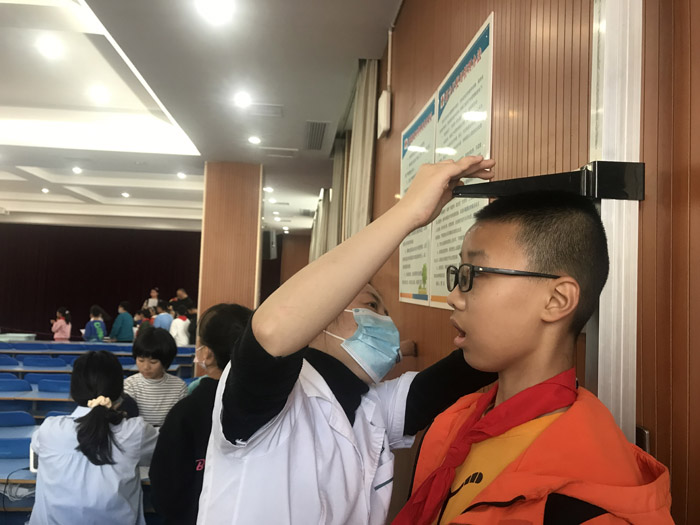 本次监测的内容主要包括学生近视、肥胖、脊柱弯曲异常、龋病、牙周疾病、营养状况等常见病情况,市三小共有6个年级12个班级学生参与了此次监测检查。